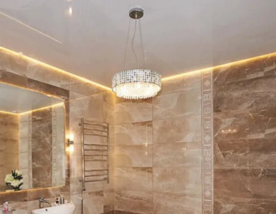 Пленка ПВХ, используемая при создании глянцевого потолка, очень надежна, благодаря особому способу обработки полотна. Если ваша задача – визуально увеличить помещение, глянец станет лучшим выбором, ведь у матовой пленки отсутствует отражающая способность.